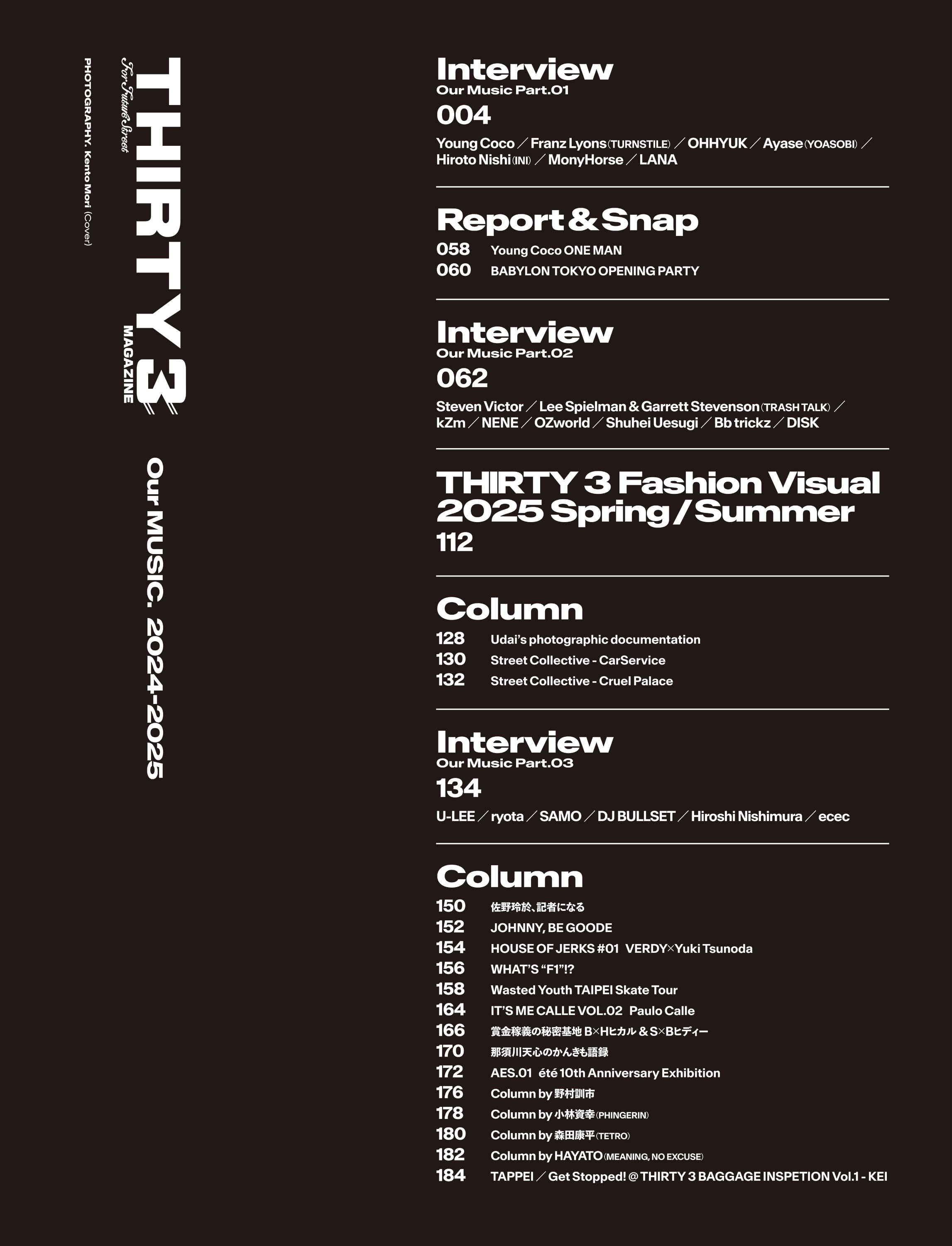 海外からは、TURNSTILEのFranz Lyons、HYUKOHのフロントマンOHHYUK、Steven Victor、TRASH TALKのLee SpielmanとGarrett Stevenson、Bb trickzが登場。海外アーティストに関しては、取材期間となった2024年からの1年間、日本で編集部が取材することができた面々を掲載している。