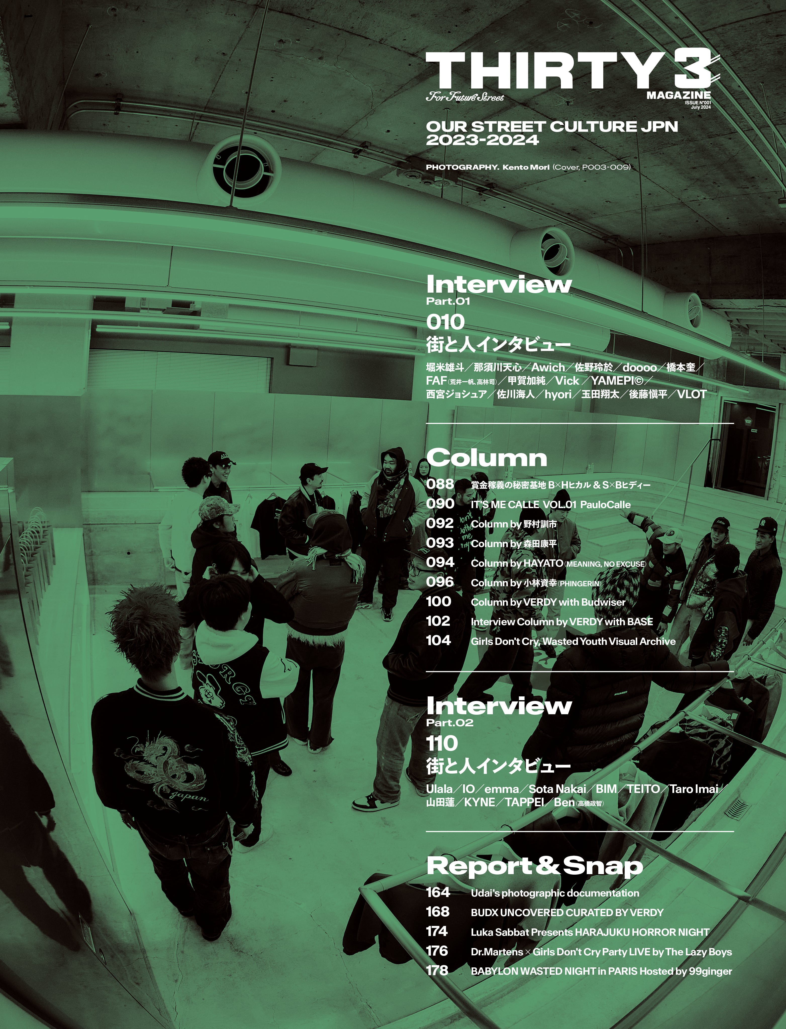 記念すべき第1号は「OUR STREET CULTURE JPN 2023-2024」と題して、現在の日本のストリートカルチャーを体現し次世代を担うであろうアーティストにフォーカスし、インタビューで迫る。